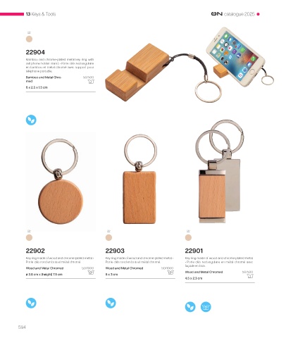 Key ring made of wood and chrome-plated metal. • Key ring made of wood and chrome-plated metal. • Key ring made of wood and chrome-plated metal.