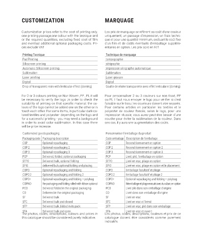 Customization prices refer to the cost of printing only, Les prix de marquage se réfèrent au coût d’une couleur