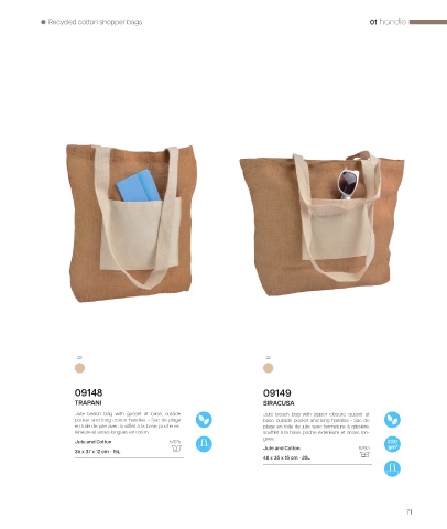 en toile de jute avec soufflet à la base, poche ex- plage en toile de jute avec fermeture à glissière,