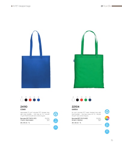 with long handles. • Tote bag en PET recyclé long handles. • Tote bag cousu en PET recyclé
