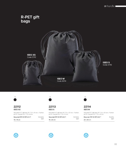 Recycled PET gift bag 210 T, 10 x 14 cm. • Pochon Recycled PET gift bag 210 T, 15 x 20 cm. • Pochon Recycled PET gift bag 210 T, 25 x 30 cm. • Pochon
