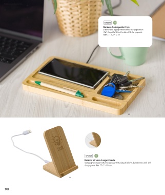 Bamboo phone holder with wireles charger (5W). Output DC5V/1A. Includes micro USB - USB