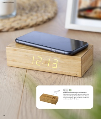 Bamboo wireless charger of 5W, with integrated LED clock