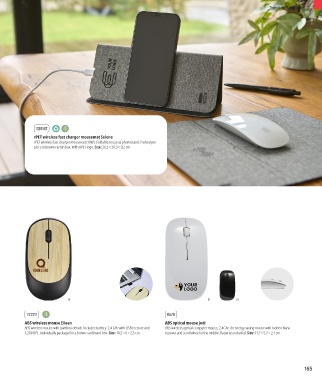 ABS wireless mouse with bamboo details. Includes battery. 2.4 GHz with USB receiver and ABS wireless optical computer mouse, 2,4Ghz. An energy saving mouse with hidden Nano
