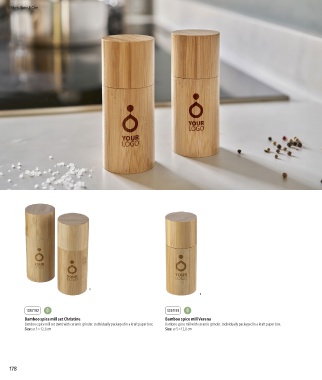 Bamboo spice mill set (two) with ceramic grinder. Individually packaged in a kraft paper box. Bamboo spice mill with ceramic grinder. Individually packaged in a kraft paper box.