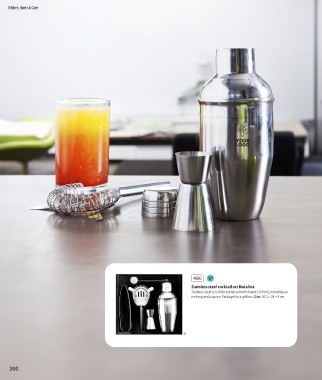 Kitchen, Home & Care 21 01 400 750 4680 350 Stainless steel cocktail set Natalina 01 01 Stainless steel (s/s304) cocktail set with shaker (350 ml), including an ice tong and a spoon. Packaged in a gift box. Size: 26,5 × 24 × 9 cm 30 32 200 201