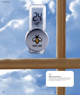 Kitchen, Home & Care 32 01 32 01 32 6201 ABS thermometer Roxanne ABS thermometer with LCD display anda suction cup. Examines the temperature of the environment automatically six times per minute. Batteries included. Size: 6,5 × 3 × 1,7 cm 224 225