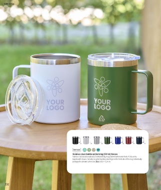 topside with closure. Includes recycled stainless steel logo on the front side of the mug. Individually