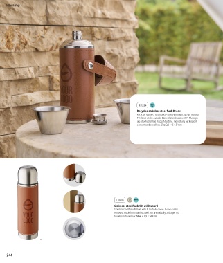 Recycled stainless steel flask (230 ml) with two cups (40 ml) and