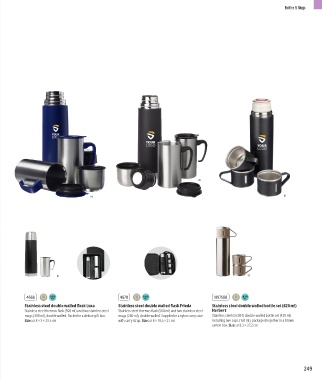 mugs (300 ml), double walled. Packed in a deluxe gift box. mugs (260 ml), double walled. Supplied in a nylon carry case Stainless steel (s/s304) double-walled bottle set (420 ml)