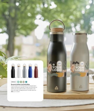Recycled stainless steel drinking bottle (500 ml) with bamboo