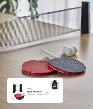 Childeren & Games 11 08 23 07 08 05 19 09 839508 ABS table tennis set Melinda ABS Table tennis set. Including 2 bats, an extendable net, 3 balls. Packed in RPET pouch. Size: 30 × 22 × 0,5 cm 01 382 383
