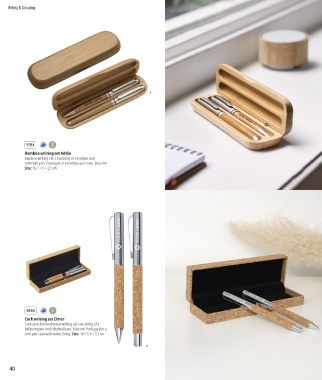 Cork and chromed metal writing set consisting of a