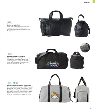 600D recycled polyester duffle bag with 150D PU lining and PU