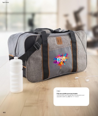 Bags & Trolleys 08 23 01 03 05 03 01 7955 Polycanvas (600D) sports bag Rochelle Poly canvas (600D) sports bag with open front compartment and adjustable shoulder strap. Size: 48,5 × 27 × 28,5 cm 01 458 459