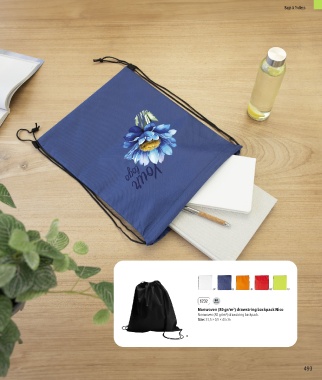 Bags & Trolleys 02 03 04 05 06 08 17 18 19 23 24 367 01 02 05 06 08 19 01 23 02 05 07 08 19 6232 80 2 Nonwoven (80 gr/m ) drawstring backpack Nico Nonwoven (80 gr/m ) drawstring backpack. 2 Size: 33,5 × 0,5 × 43 cm 01 01 492 493