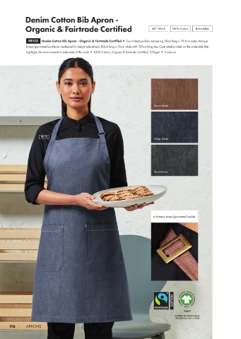 PR113 Denim Cotton Bib Apron - Organic & Fairtrade Certified Two mitred pockets measuring 20cm long x 19.5cm wide, Antique