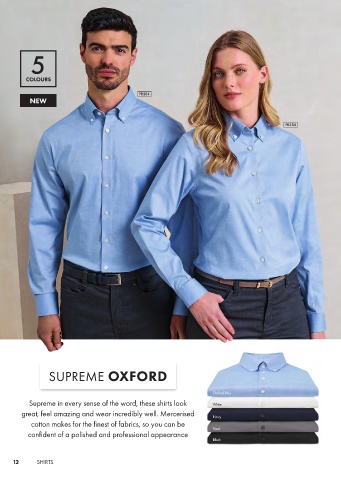 COLOURS ‘Supreme’ Oxford Shirts 72% Cotton, 25% Organic Cotton, 3% Elastane, 135gsm, 5 colours