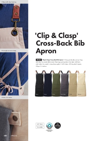 PR182 'Clip & Clasp' Cross-Back Bib Apron Strong and durable canvas, Clasp