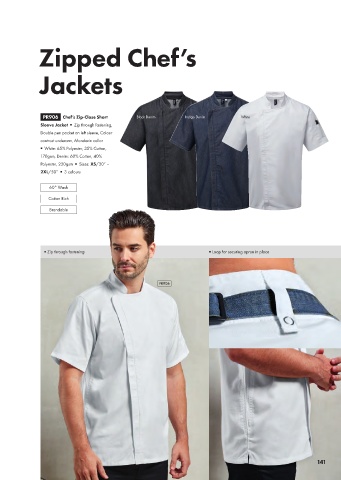 PR906 Chef’s Zip-Close Short Black Denim Indigo Denim White