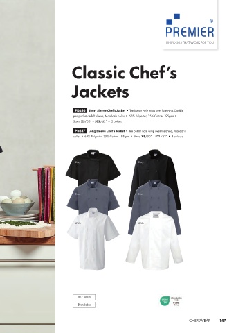 PR656 Short Sleeve Chef’s Jacket Ten button hole wrap over fastening, Double