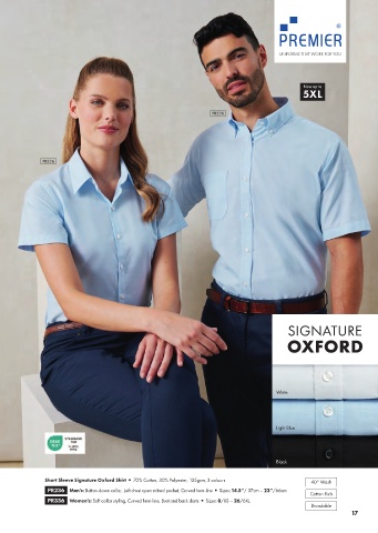 Long Sleeve Signature Oxford Shirt 70% Cotton, 30% Polyester, 135gsm, 3 colours Modern Fit Short Sleeve Signature Oxford Shirt 70% Cotton, 30% Polyester, 135gsm, 3 colours 40° Wash
