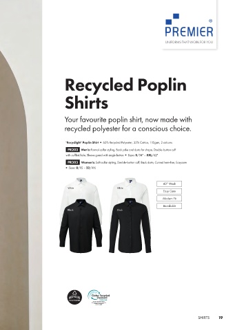 'Recyclight' Poplin Shirt 65% Recycled Polyester, 35% Cotton, 115gsm, 2 colours