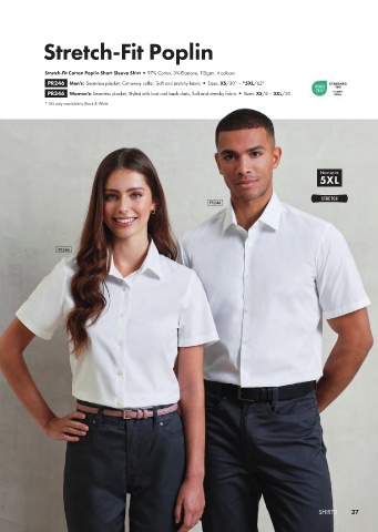 STRETCH PR246 Men’s: Seamless placket, Cut-away collar, Soft and stretchy fabric Sizes: XS/30” – *5XL/62”