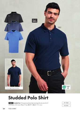 PR610 Studded Polo Three pop stud placket, Extra body length, Durable pique knit 50° Wash