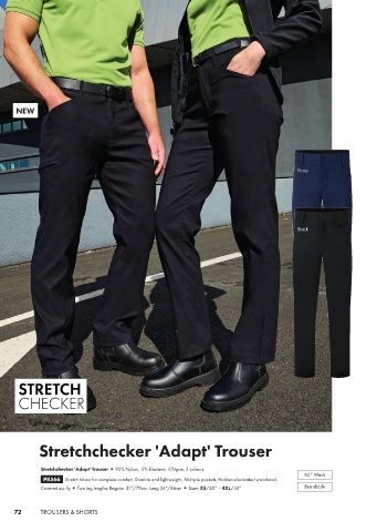 Stretchchecker 'Adapt' Trouser 95% Nylon, 5% Elastane, 170gsm, 2 colours Stretchchecker 'Work Cargo' Trouser 65% Recycled Polyester, 33% Cotton, 2% Elastane, 240gsm, 2 colours