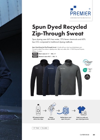 Spun Dyed Recycled Zip-Through Sweat Made with spun dyed recycled polyester yarn,