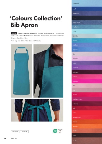 PR150 ‘Colours Collection’ Bib Apron Adjustable buckle on neckband, 100cm self-fabric