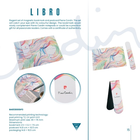 Elegant set of magnetic bookmark and postcard Pierre Cardin. The set