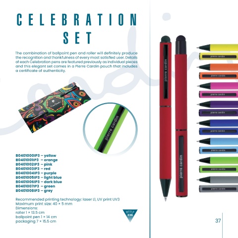 protection of the tip. The Pierre Cardin individual gift pouch includes