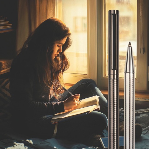 engraving. It contains a quality blue refill with a 1 mm tip and one