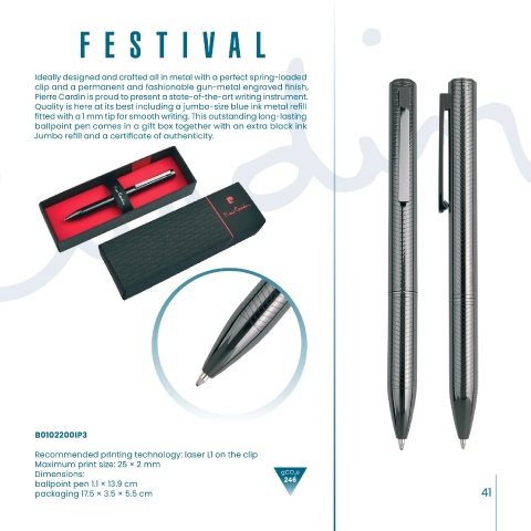 writing smoothness. Each ESPACE ballpoint pen comes in a Pierre ballpoint pen comes in a gift box together with an extra black ink