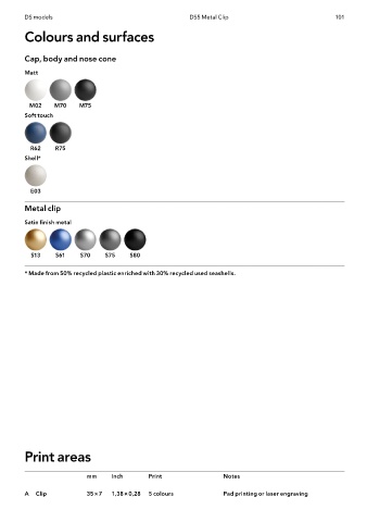 A Clip 35 × 7 1,38 × 0,28 5 colours Pad printing or laser engraving