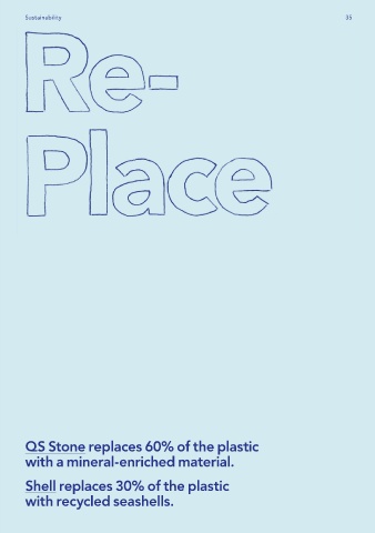 Sustainability 35 QS Stone replaces 60% of the plastic with a mineral-enriched material. Shell replaces 30% of the plastic with recycled seashells.