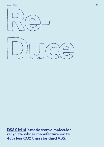 Sustainability 41 DS6 S Mini is made from a molecular recyclate whose manufacture emits 40% less CO2 than standard ABS.