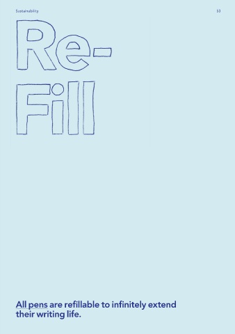 Sustainability 53 All pens are refillable to infinitely extend their writing life.