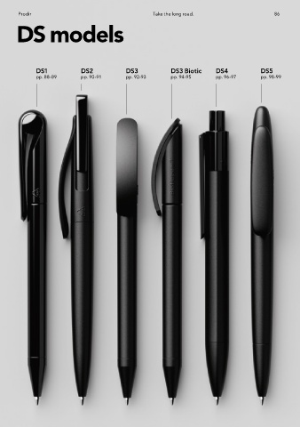 Prodir Take the long road. 86 DS models DS1 DS2 DS3 DS3 Biotic DS4 DS5 pp. 88-89 pp. 90-91 pp. 92-93 pp. 94-95 pp. 96-97 pp. 98-99