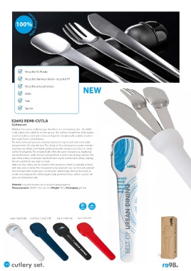 transported in the closable box. The design of the cutlery pieces makes intuitive