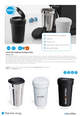 With RETUMBLER-VIVERO STEEL, a REFLECTS® in-house design, you present a thermo mug with a large filling capacity of 350 ml and outstanding functionality to