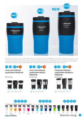 anti-fingerprint coating. The mug, the lid and the silicone parts are suitable for cleaning in the dishwasher. The black plastic lid is BPA free.