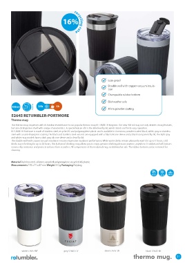 RETUMBLER-Portmore is made of stainless steel, recycled AS and polypropylene plastic and is available in 4 versions: powder-coated black, white, gray or stainless