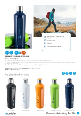 The bottle can be customised with laser engraving, pad printing and UV printing. A gift box is included.