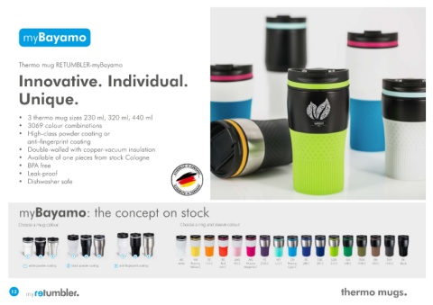 • 3 thermo mug sizes 230 ml, 320 ml, 440 ml