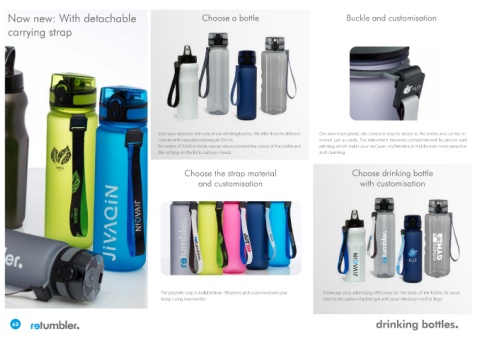 Start your selection with one of our drinking bottles. We offer them in different Our new black plastic clip closure is easy to attach to the bottle and can be re-