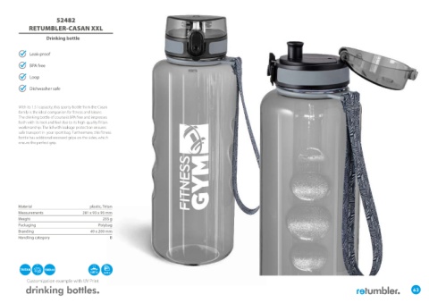 With its 1.5 l capacity, this sporty bottle from the Casan