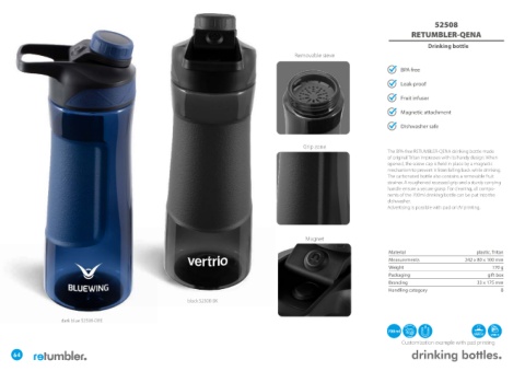 The BPA-free RETUMBLER-QENA drinking bottle made